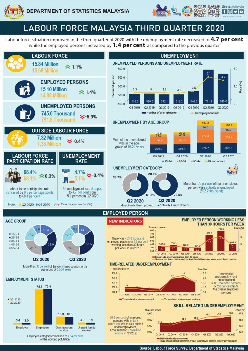 Principal Statistics of Labour Force, Malaysia, Third Quarter (Q3) 2020