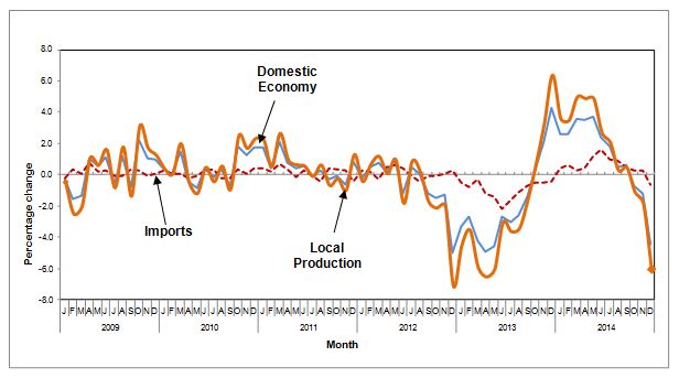 Graph 2: Producer Price Index (year-on-year) Percentage Change – Domestic Economy, Local Production and Imports, 2009-2014
