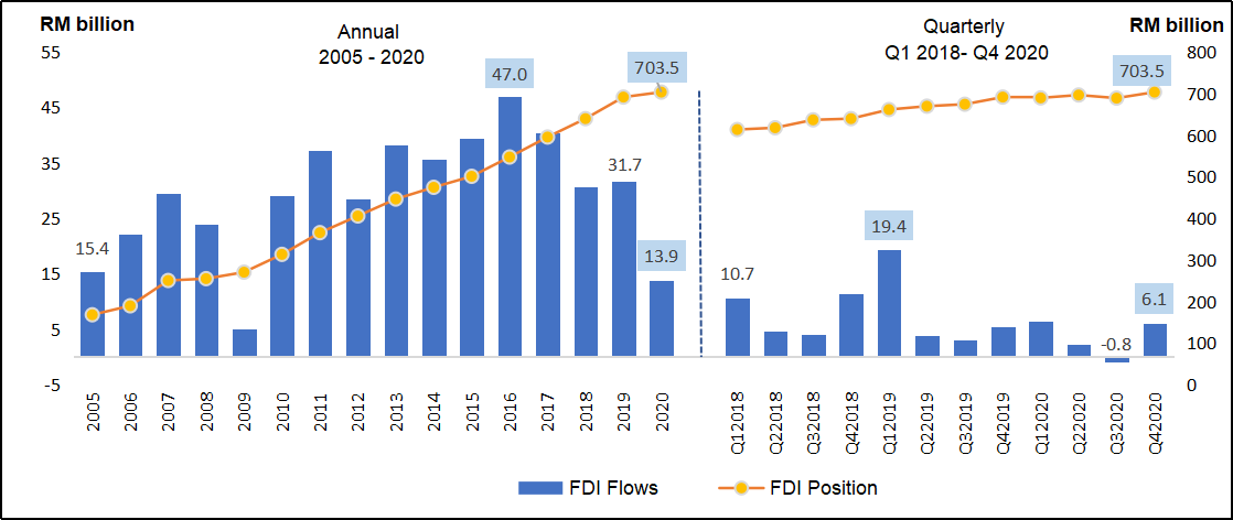 Chart 3: Foreign Direct Investment (FDI) in Malaysia Flows and Position,