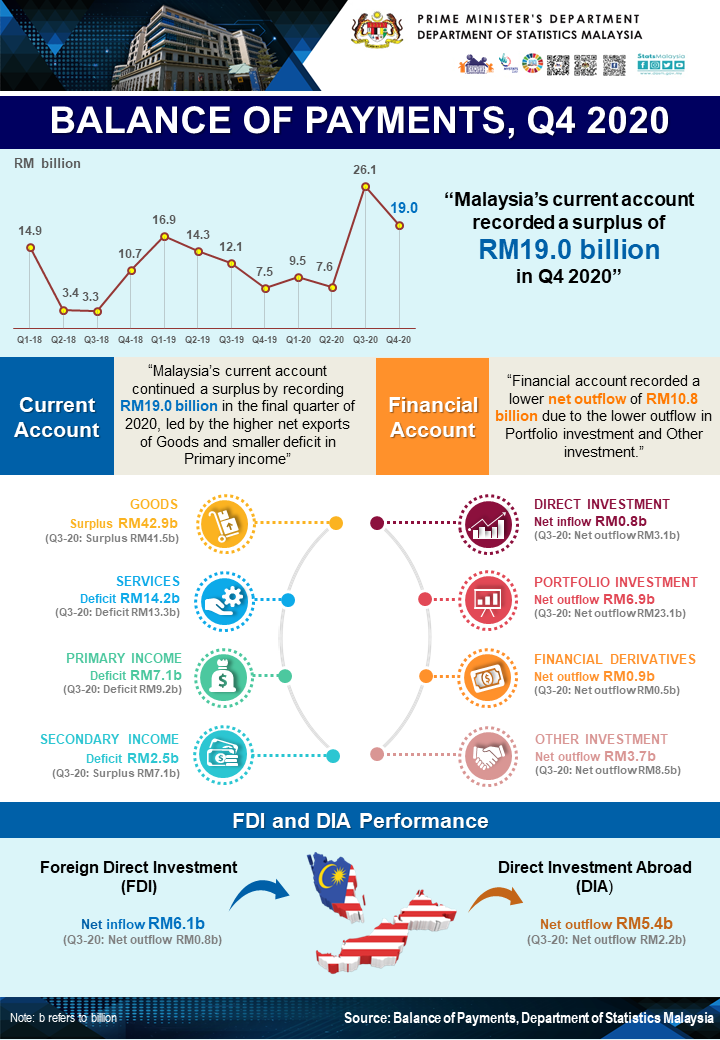 The full publication of Quarterly Balance of Payments, Fourth Quarter 2020 can be downloaded through eStatistik portal.