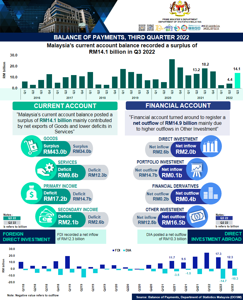 The full publication of Quarterly Balance of Payments, Third Quarter 2022 can be downloaded through eStatistik portal.