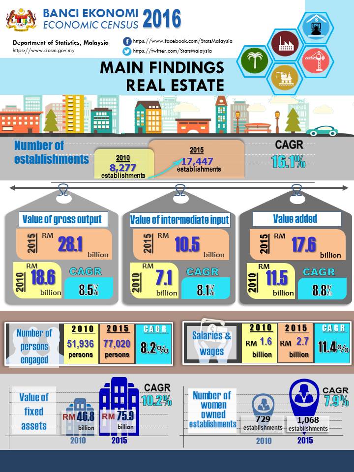 The census results showed that there were 17,447 establishments operated in real estate services compared to 8,277 establishments in 2010 with a compound annual growth rate (CAGR) of 16.1 per cent.