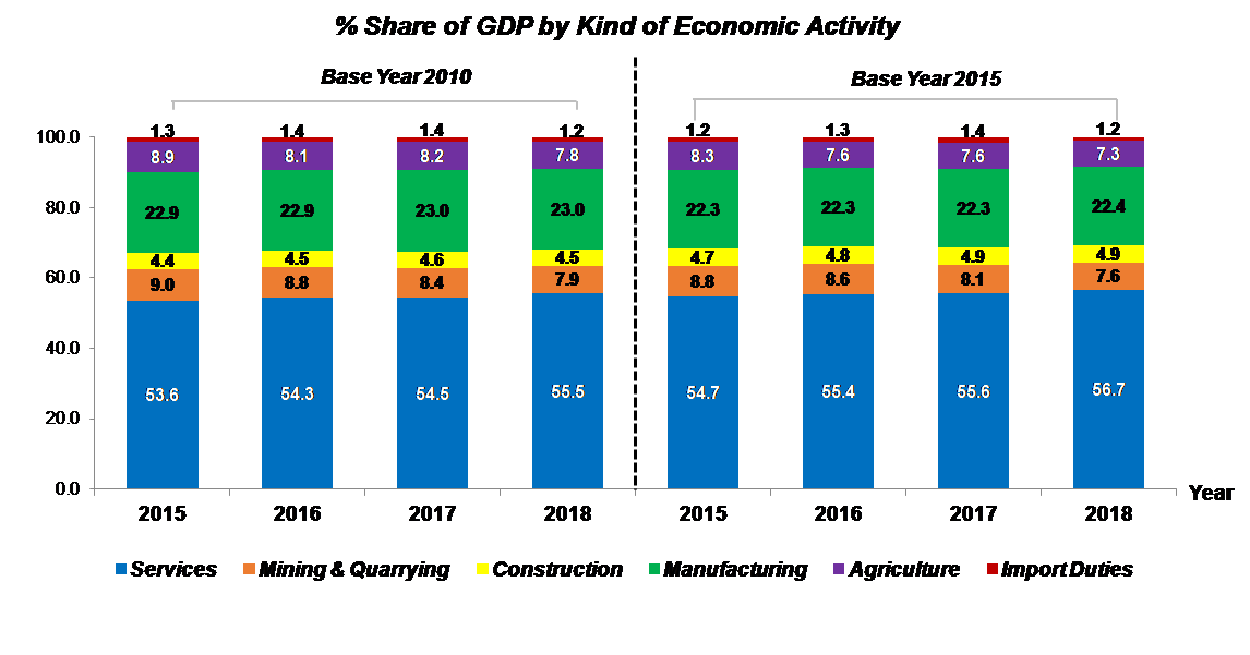 Estimates of GDP at constant prices are fundamentally measure changes in the volume term of economic activity while keeping relative prices constant. The base year’s relative price weights become less accurate through the years as prices of goods and services changed from time to time. Therefore, to update the base year price weights to a more recent reference year, it is essential to periodically rebase the GDP.