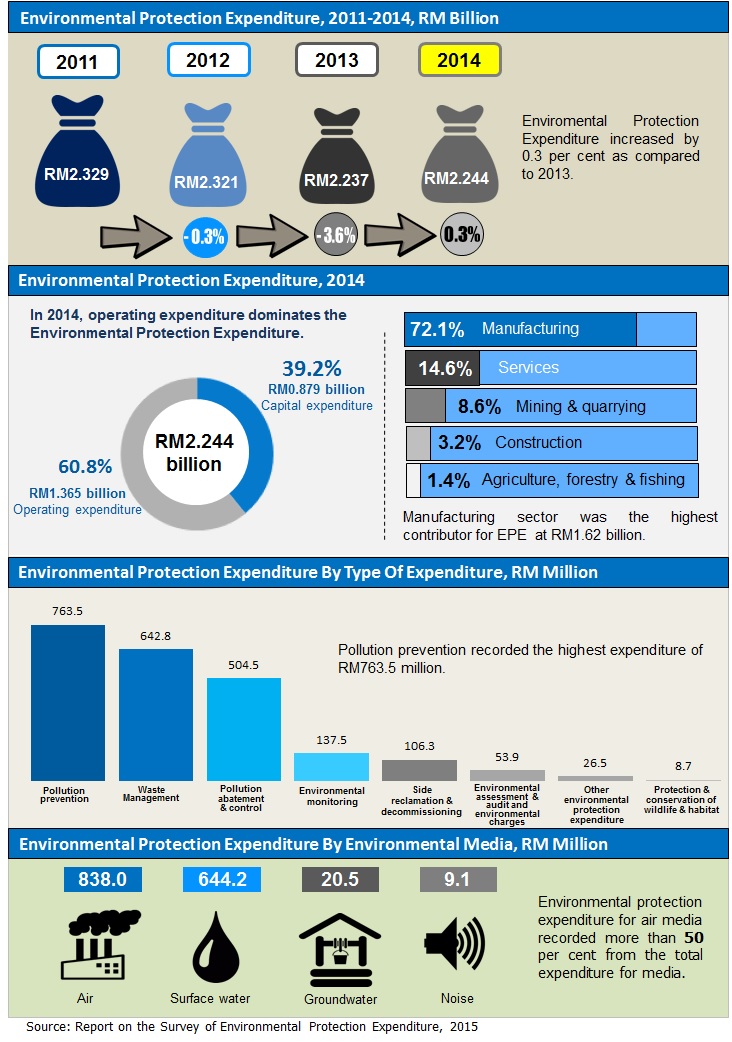 Environmental Protection Expenditure (EPE) increased 0.3% in 2014 to RM2.244 billion
