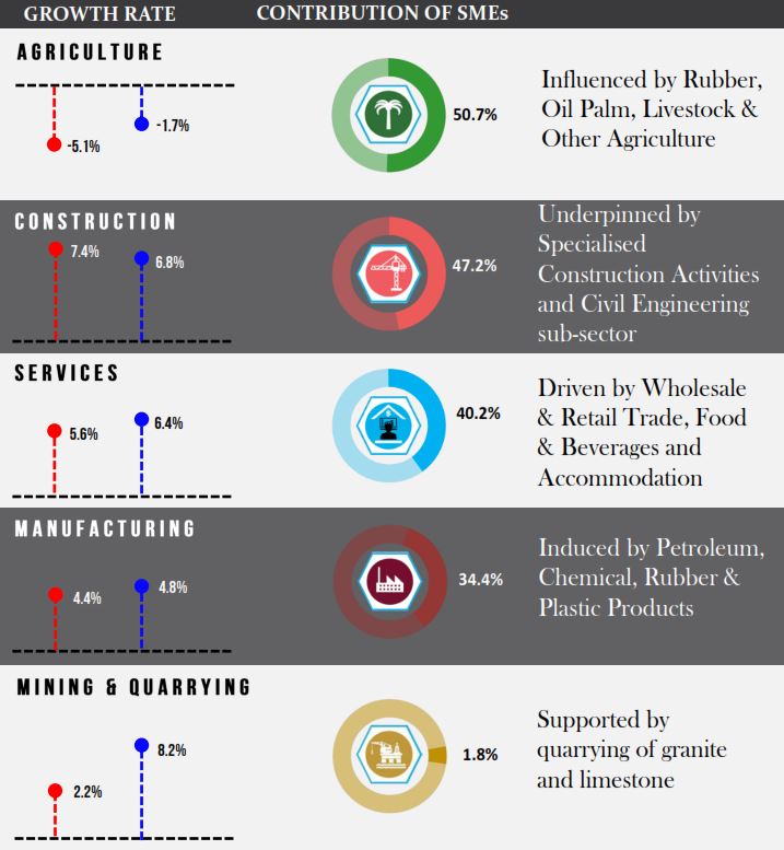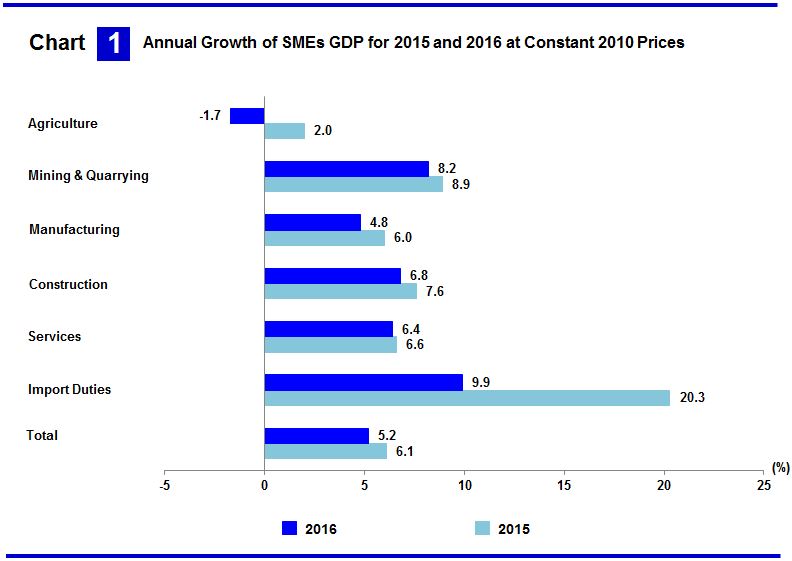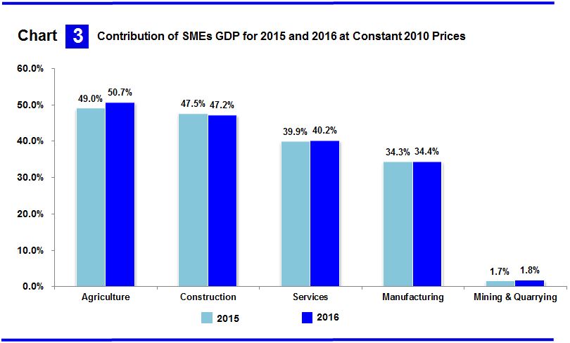In addition, the SMEs GDP in Mining & Quarrying sector recorded a share of 1.8 per cent mainly in quarrying of granite and limestone.