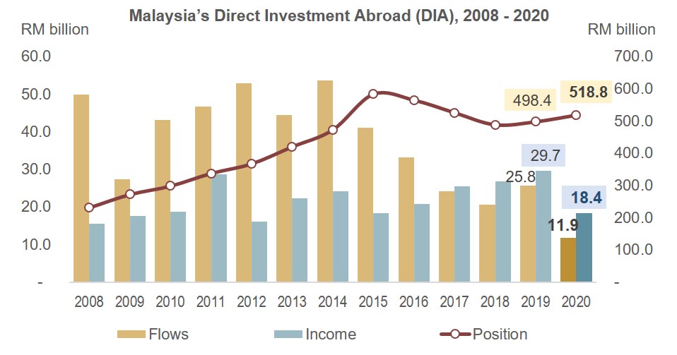 Malaysia’s DIA flows in 2020 declined while the accumulated investment overseas improved to RM518.8 billion