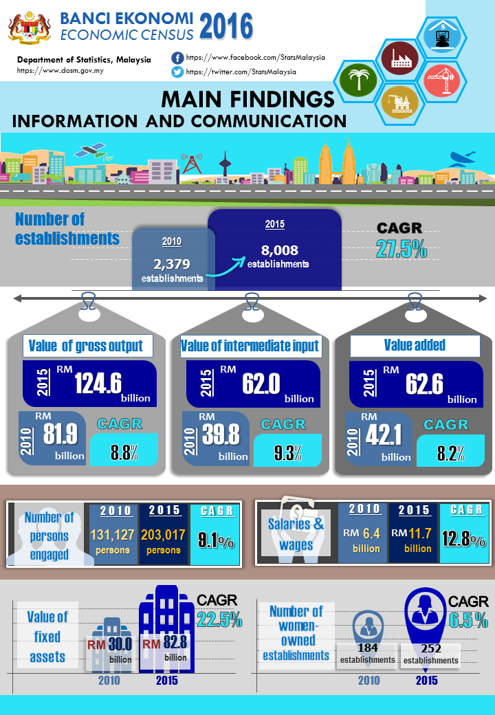 The results of the census showed that a total of 8,008 establishments operated in information and communication services compared to 2,379 establishments in 2010, increased by 5,629 establishments. The compound annual growth rate (CAGR) was 27.5 per cent annually.