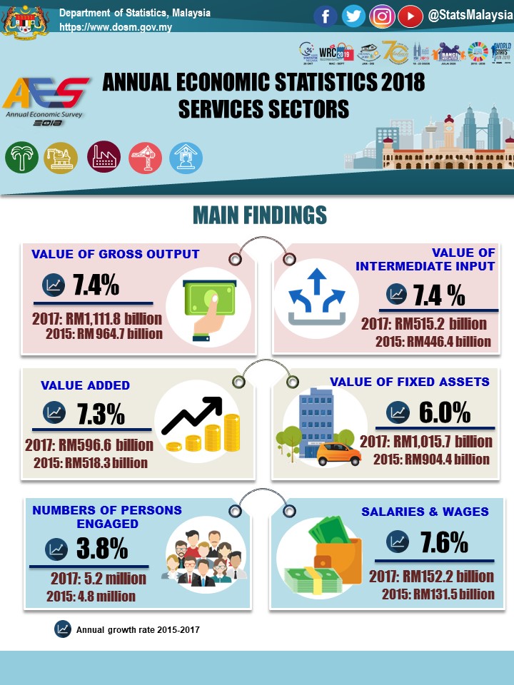 Value of gross output for services sector recorded an annual growth rate of 7.4 per cent, reached RM1.1 trillion in 2017