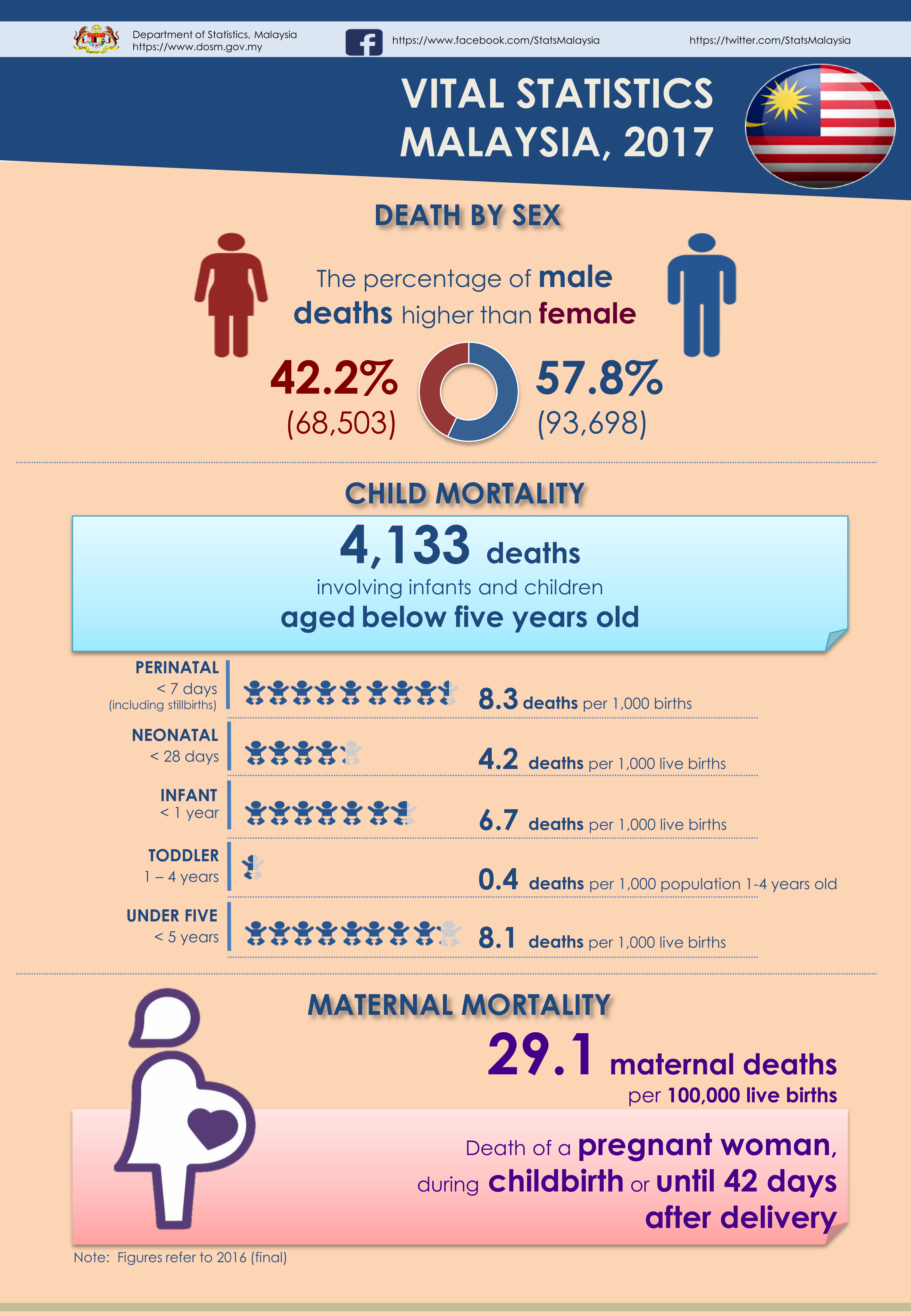 The number of stillbirths in 2016 recorded an increase as compared to 2015 i.e. from 2,325 to 2,648 babies. This increase contributed to the rise in stillbirth rate from 4.4 (2015) to 5.2 (2016) per 1,000 births.
