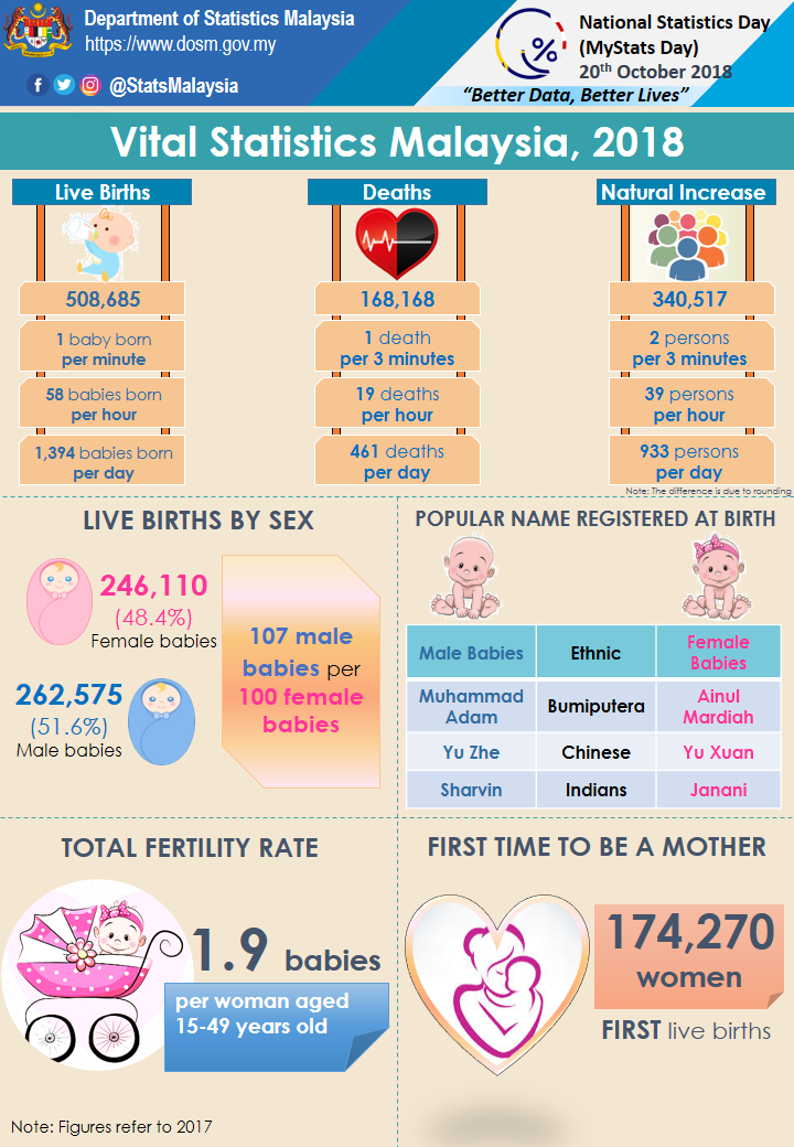 TFR for Malaysia has reached below replacement level of 2.1 since 2013 which indicates that the average number of babies born per woman throughout her reproductive life has been insufficient to replace herself and her partner.